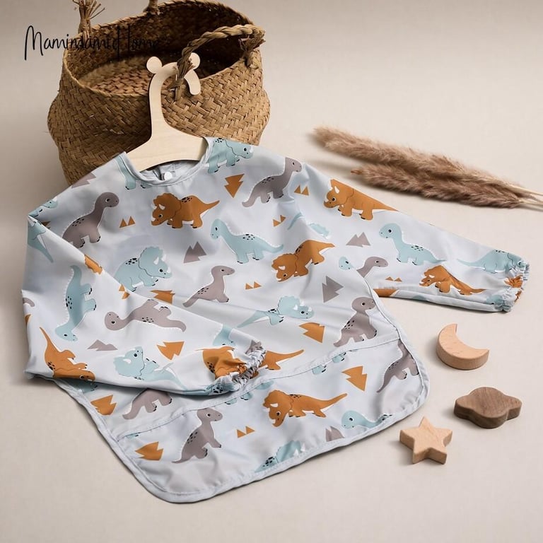 Mamimami Home Baby Bibs with Sleeves and Pocket 1pc Waterproof Apron Use In Feeding,Painting,Playing 3-36 Months