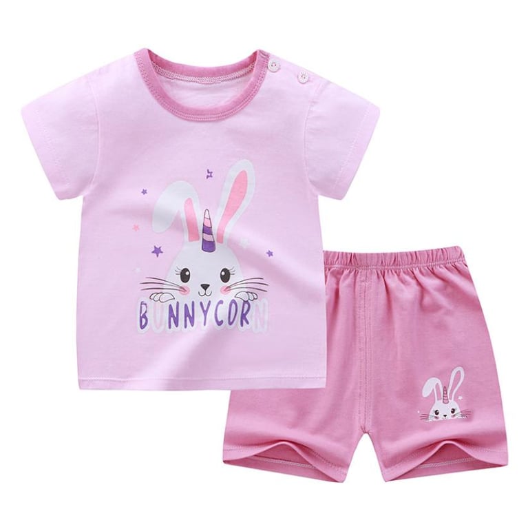 Summer New Arrival Fashion Baby Boys Girls Short Sleeve Cartoon T Shirt Shorts Set Pure Cotton Toddler Clothes for 1-5T