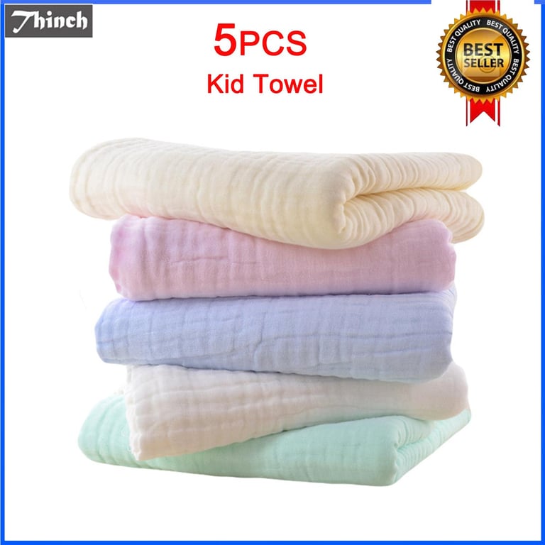 5 PCS Assorted Colors Super Soft Cotton Kid Newborn Baby Towel Muslin Face Sweat Saliva Wipe Washcloth 30 x 30cm