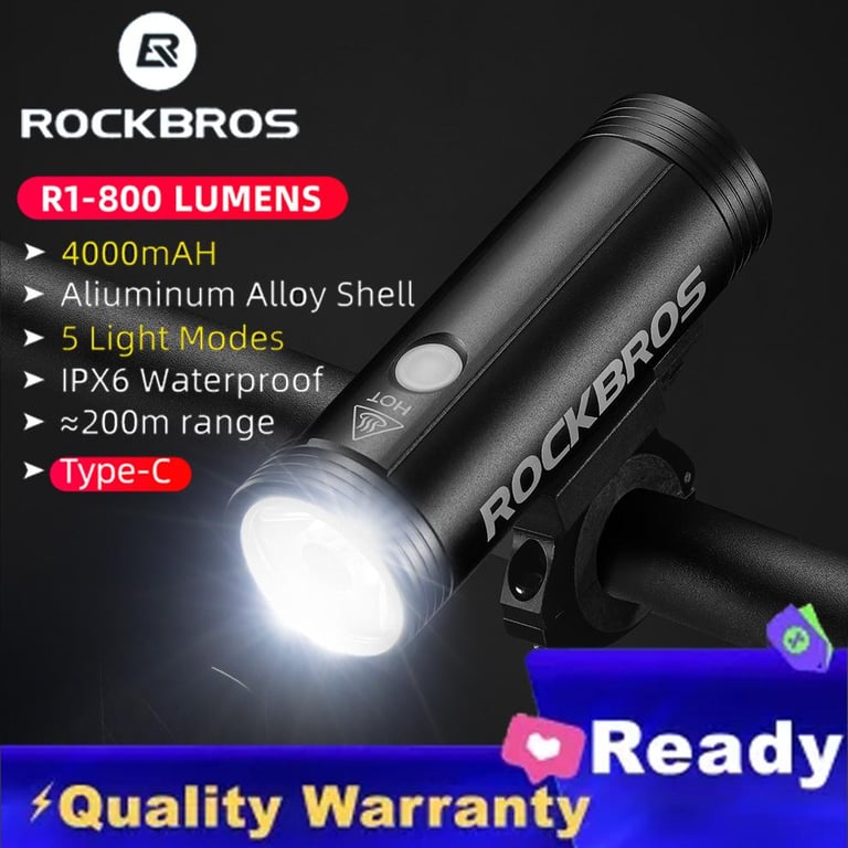 【SG Delivery】ROCKRBOS 10000mAh/2400mAh Bicycle Head light Rechargeable Waterproof 850/600Lumen Aluminum Alloy Type-C/USB Front MTB Bike Lights