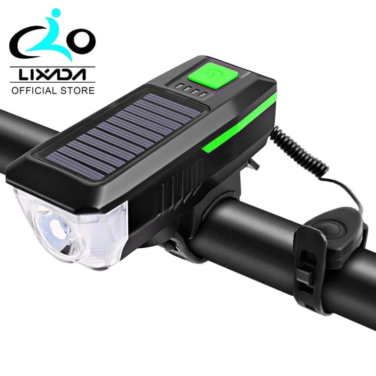 [Lixada Official Store] Solar / USB Charging Bike Light Bicycle Bell Horn Lamp Bike Flashlight Bike Front Light USB / Solar-Powered Rechargeable Waterproof Cycling Headlight with3 Lighting Modes 5 Sounds Fits Mountain Road Bike
