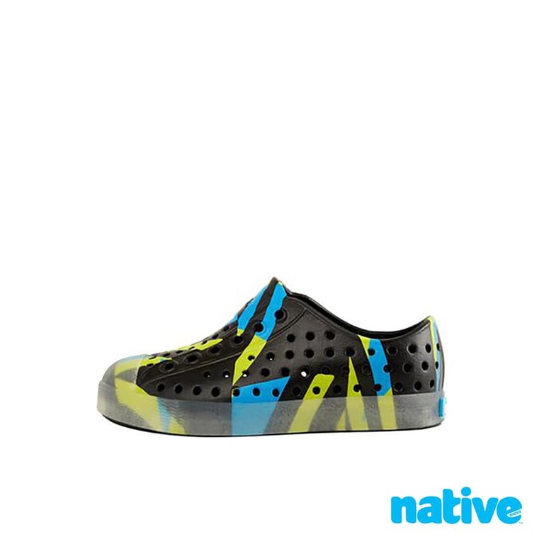 NATIVE Jefferson Glow Child Shoe - Jiffy Black/ Transparent Glow/ Chartreuse Print