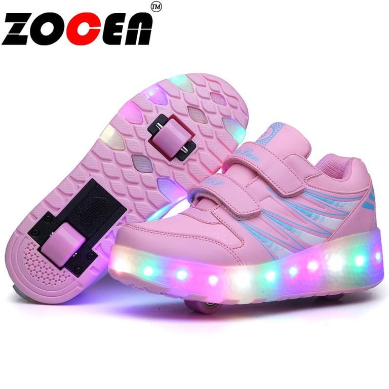 ZOCEN Child Heelys LED Light Sneakers With Two Wheels Boys Girls Roller Skate Casual Shoes With Roller Boy Girl Sport Shoes