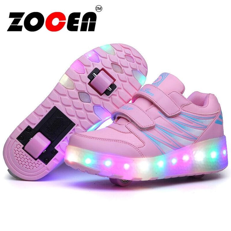 ZOCEN Child Heelys With Two Wheels LED Light Shoes for Boys and Girls Casual Sports Roller Skates Waterproof LED Interface Can Be Charged