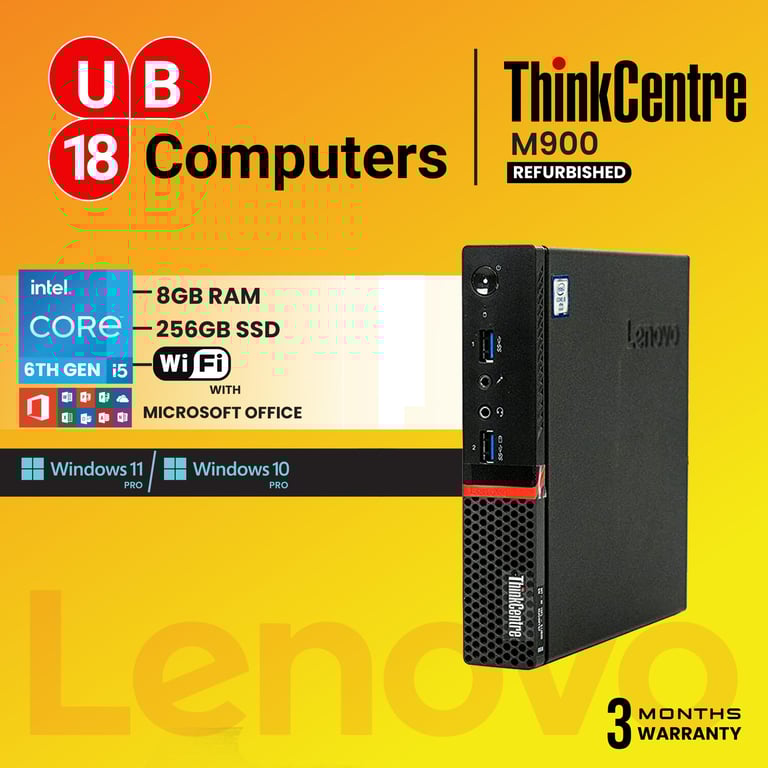 LENOVO ThinkCentre M900 Tiny Desktop Quad Cores Intel i5-6500T 8-32GB DDR4 New 256GB-1TB M.2 NVMe SSD DP to HDMI Wifi Win 10 Pro Used - Leinfotech