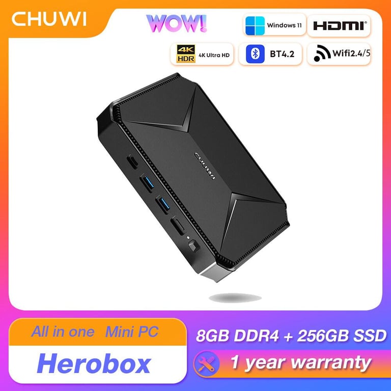 CHUWI Official HeroBox Mini computer Windows11 System Super performance 4K Mini Desktop Computers Small PC with 8GB RAM 256GB SSD Quad core Save electricity Lightweight Expandable 2.5 Inch HDD, type c hdmi VGA USB3.0x4 BT 4.2,Dual WiFi VGA TV