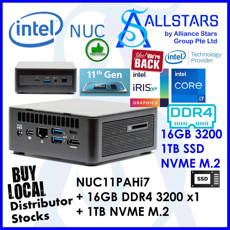 (ALLSTARS : NUC) Intel NUC11PAHi70Z00 + 16GB DDR4 3200MHz + 1TB NVME SSD + Unactivated MS Win10 Complete Mini PC / NUC11PAHi7 / NUC11PAH i7-1165G7 Core 4, Thread 8 / mDP+HDMI+Type-C / TypeCx2 + USB3.0x3 / TB3 / Intel GBE LAN / WIFI6+BT5.0 / Panther Canyon