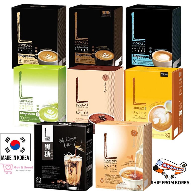 Korea Instant Coffee LOOKAS 9 30T Latte / Double Latte / Vanilla / Green Tea / Tiramisu / Milk Tea / Mild and Dark Americano