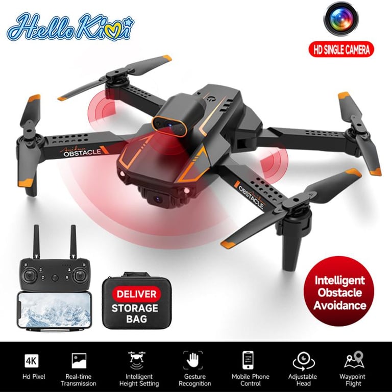 HelloKimi Drone With Camera S91 4K HD Camera Mobile Phone Remote Control Drone Portable Folding Quadcopter Adjustable Head Obstacle Avoidance Altitude Hold