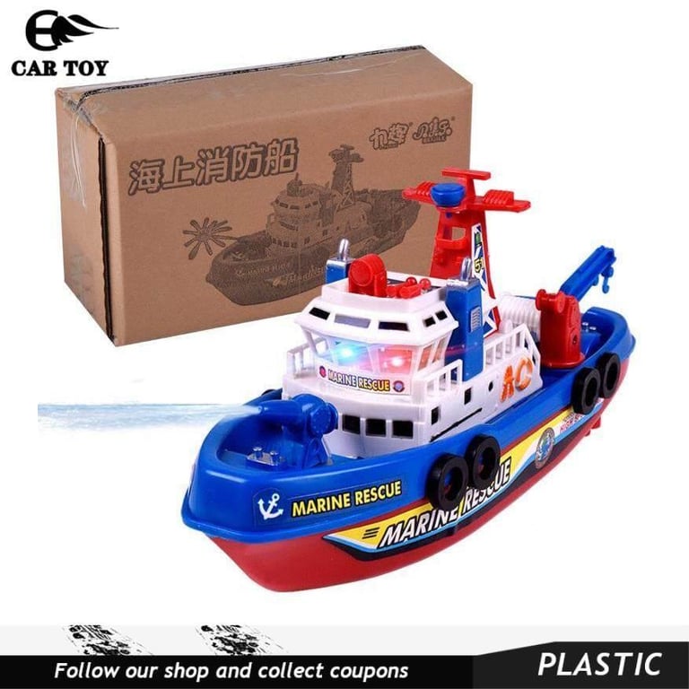 Car Toys 1pcs Rc Boats Remote Control Ship Toys High Speed Music Light Electric Marine Rescue Fire Fighting Boat Non-remote Toy Kids Xmas Gift