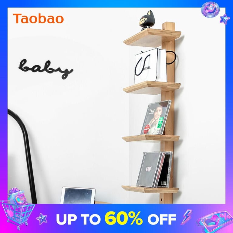 Nordic Ins Partition Solid Wood Storage Rack Kitchen Wall Multi-Layer Bookshelf Bedroom Wall Hanging Shelf Storage Rack