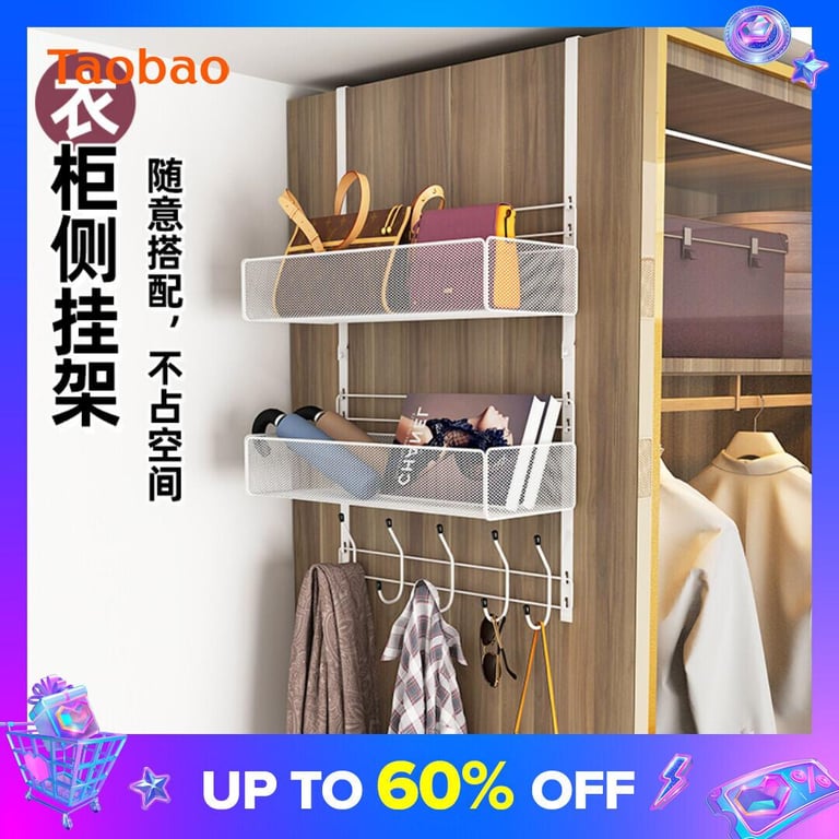 Bedroom Good Product Wardrobe Storage Artifact Side Wall Hanging Storage Rack Wardrobe Dormitory Hanging Basket Rack Bedroom Lower Rack