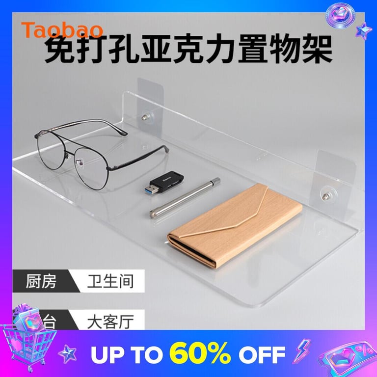 Transparent Wall Storage Rack Punch-free Acrylic Laminate Organic Glass Partition Bathroom Kitchen Storage Rack