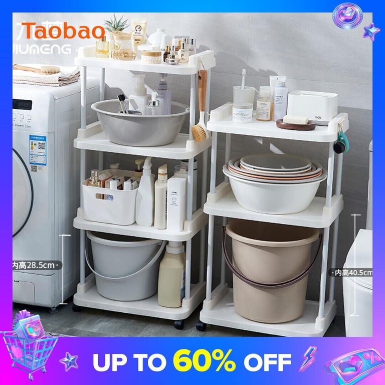 Bathroom Storage Rack Washing Machine Bucket Storage Rack Bathroom Washbasin Rack Bathroom Plastic Floor-Standing Three-Layer