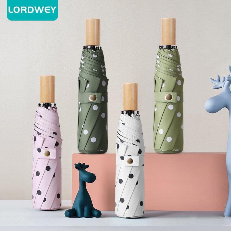 LORDWEY YADA brand High Quality Folding black Dot Umbrellas Charms Rain uv Round point Umbrella For Womens Windproof Umbrellas YS200056