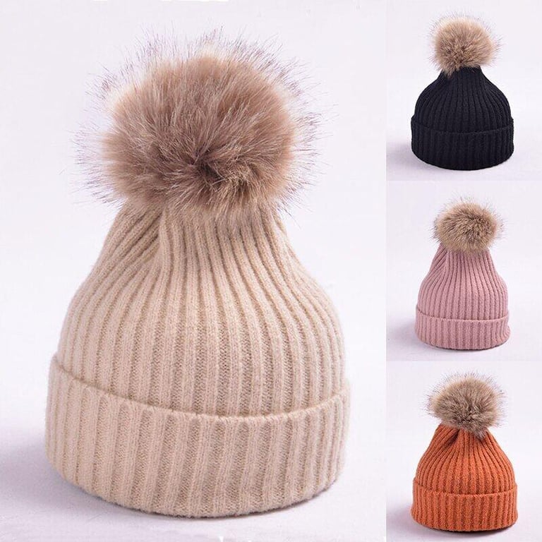 Winter Hats for Women Faux Fur Girl Warm Beanie Solid Color Fashion Bonnet Thick Wool knitted Hat Outdoor Hat