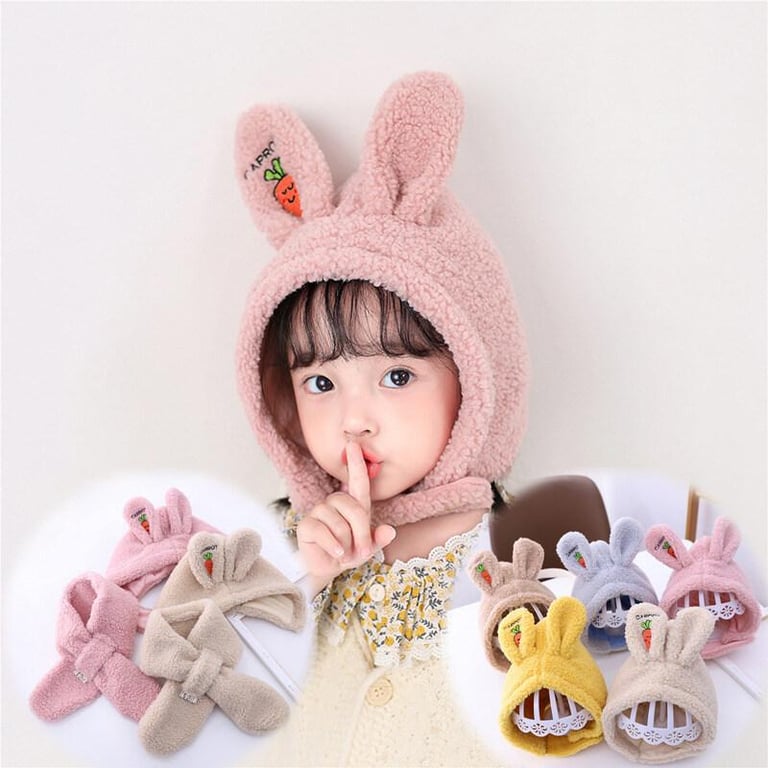 FAITOLAGI Cute Rabbit Ears Baby Hat Scarf Winter Warm Baby Girls Boys Hat Bonnet Bunny Ears Soft Kids Hat Beanie Children Cap