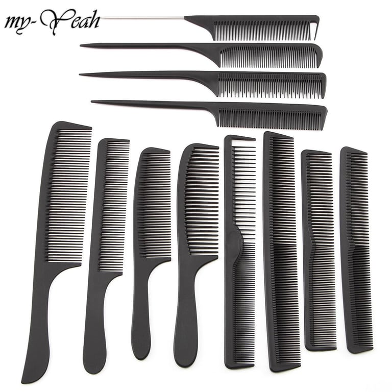 10Pcs Black Men Women Pro Salon Hair Styling Hairdressing Barbers Brush Combs Set Plastic Brush Combs