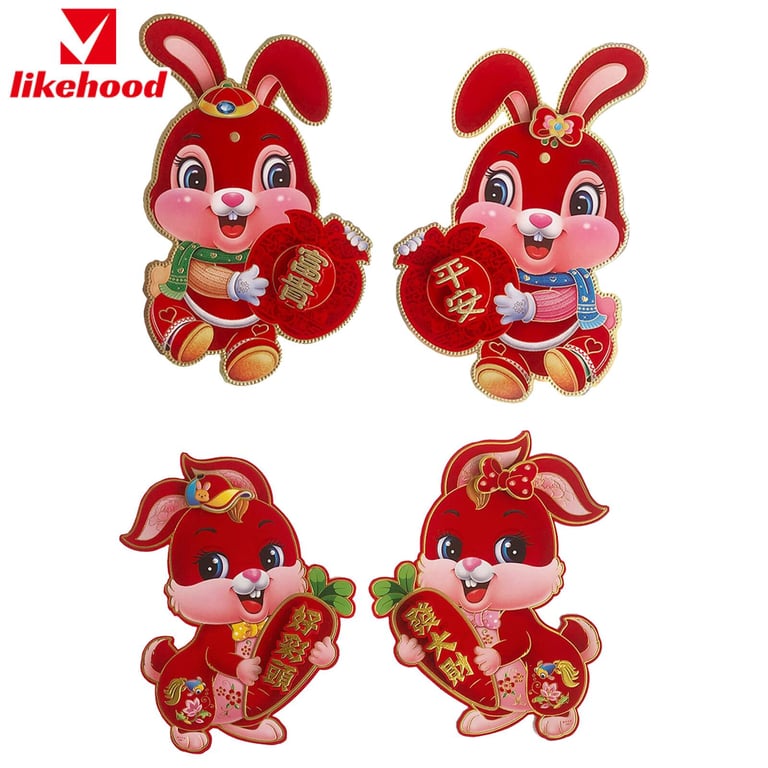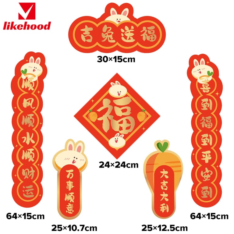 [Likelyhood] 2023 Rabbit Year CNY Chinese New Year Couplets 新年对联Window Stickers Blessing Decals Wall Home Doors Hanging Banner Couplet Package Decoration Kit Spring Festival Party Adornment Set Gift兔年卡通春联新春对联