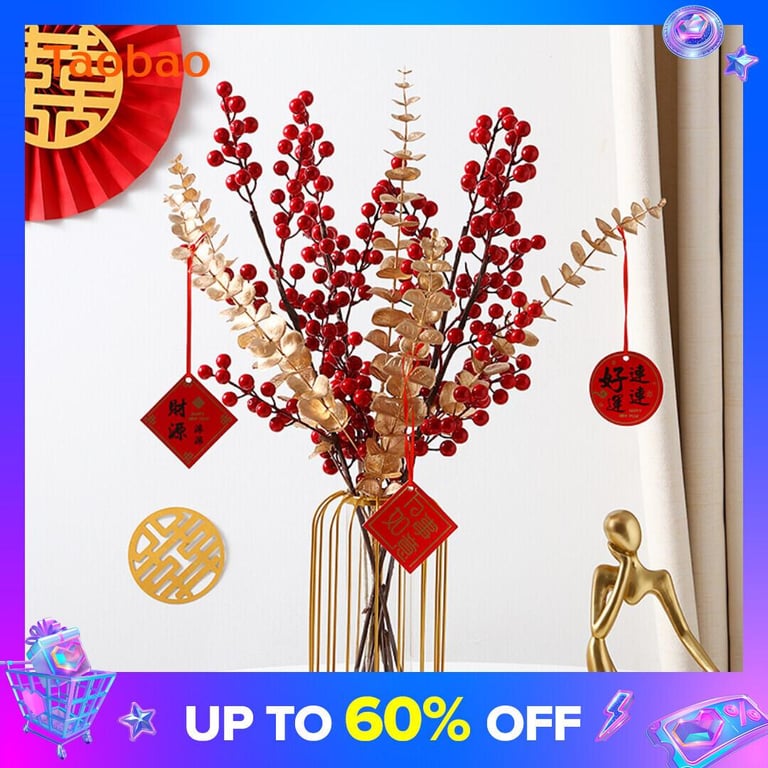 Holly Red Fruit Fortune Fruit Artificial Flower Artificial Flower Decoration Living Room Decoration Floral Decoration Dining Table Decoration Flower Home Decoration
