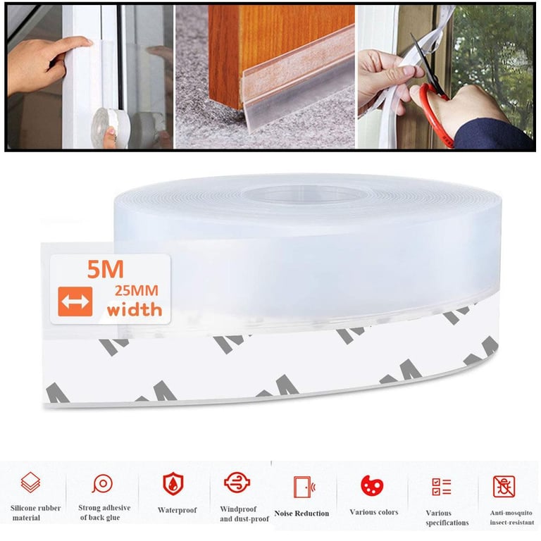 5M Weather Stripping Door Seal Strip, Door Bottom Seal Strip, Weatherproof Soundproof Anti Mosquito Insect Self Adhesive Gap Silicone Door Strip Bottom, for House and Glass Shower Door Window (Transparent,25MM, 35MM,45MM)