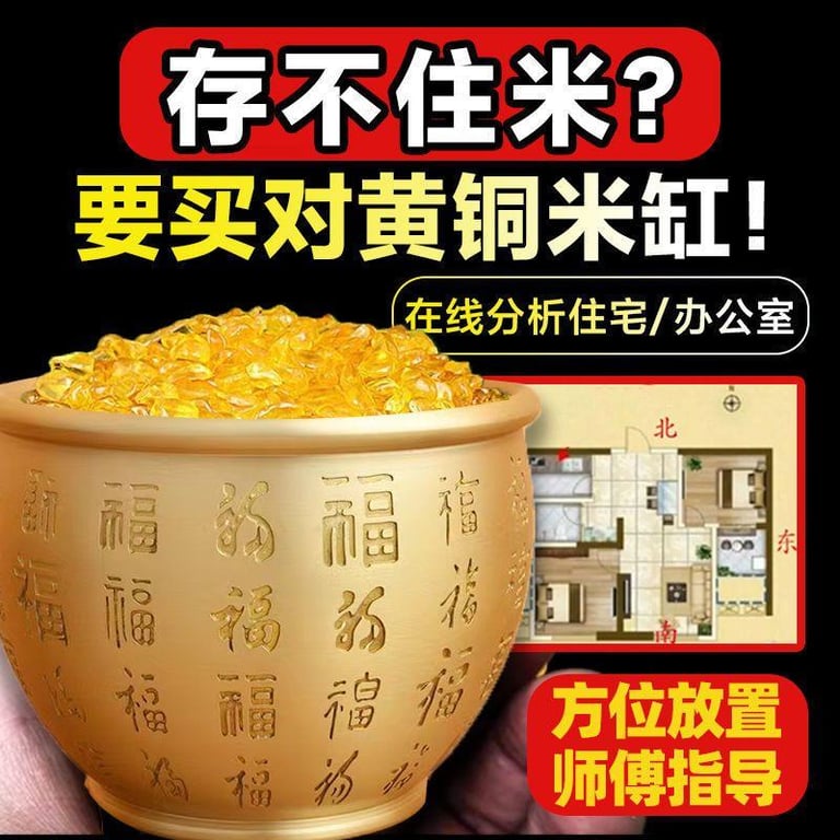 创意黄铜招财百福缸聚宝盆卧室客厅书房桌面摆件纯铜百福祈福消灾好运来发财水缸 下单送五枚铜钱 Brass Fortune Pot, Bedroom, Living Room, Study, Tabletop Decoration, Pure Copper Fortune Pot, Disaster Relief, Good Luck To Get Rich, Rice Jar, Order and Give Five Copper Coins