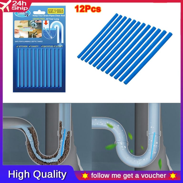 💥Special offer💥12Pcsset Drain Cleaners Sticks Oil Decontamination for Kitchen Toilet Bathtub Drain Cleaner Sewer Cleaning Rod Sewer Hair Clear Cleaner Odor Remover