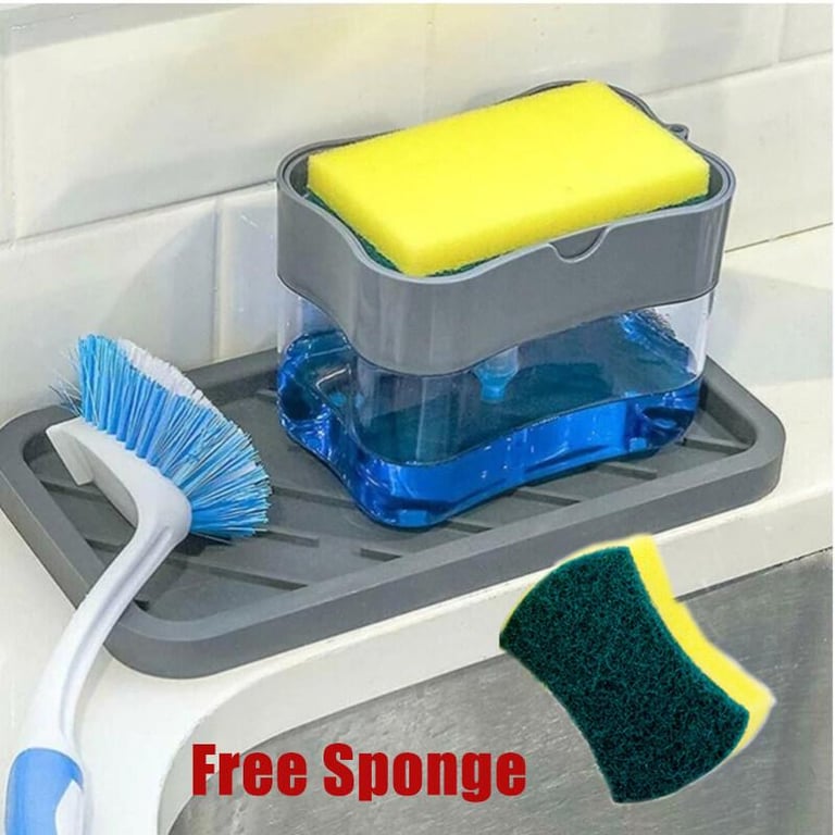 Liquid Soap Dispensers[ with Free Sponge ]Scrubbing Liquid Detergent Dispenser Sponge Press-type Liquid Soap Box Pump Organizer Kitchen Soap Dispenser