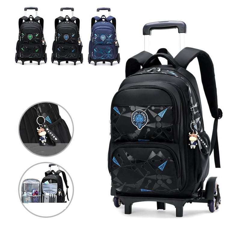 {Discount} New Middle School Student 6-wheel Trolley School Bag Waterproof Wear-resistant Capacity Backpack Detachable