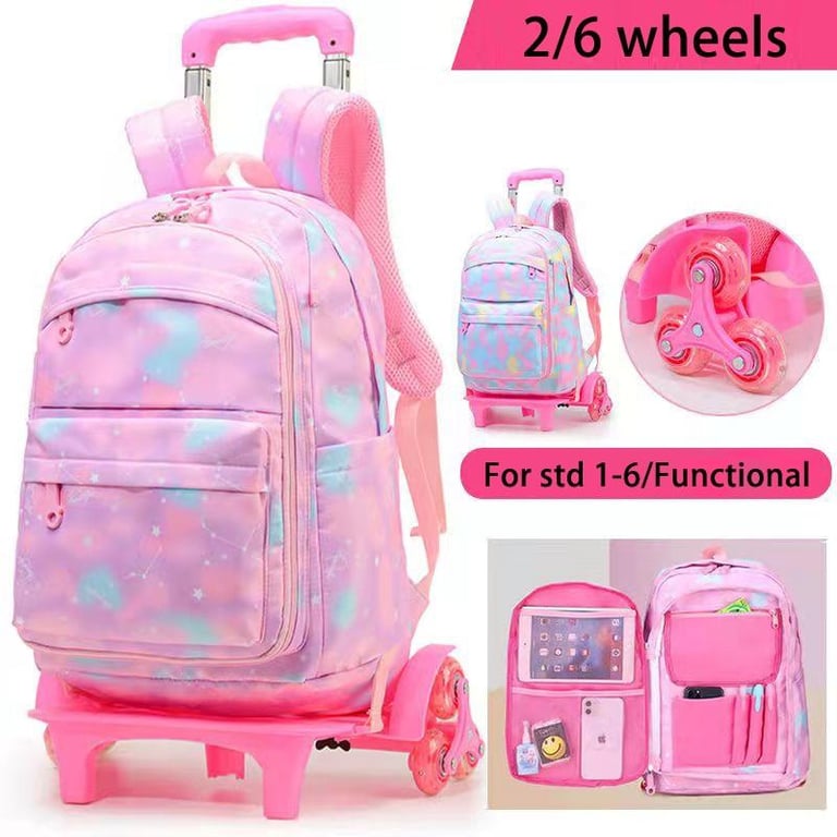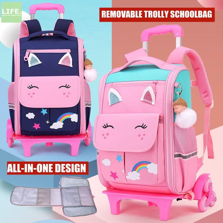 Korean Style Functional Trolley Bags Pack Kids School Rolling Backpack Bagpacks School Bags with 2 6 Wheels for Girls Perempuan Primary School Wheeled Backpacks 7 8 9 10 11 12 Tahun Std 1 2 3 4 5 6 Smiggle Beg Sekolah Roda Troli Beroda Kanak Kanak