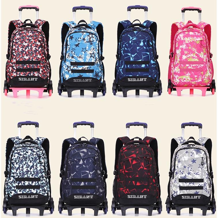 Trolley School Bag Beg Sekolah Beroda Roda 2 or 6 Wheel Troli Backpack Wheeled Primary Secondary School Large Size Capacity Pupils Bag Birthday Present Ready Stock ZR9119