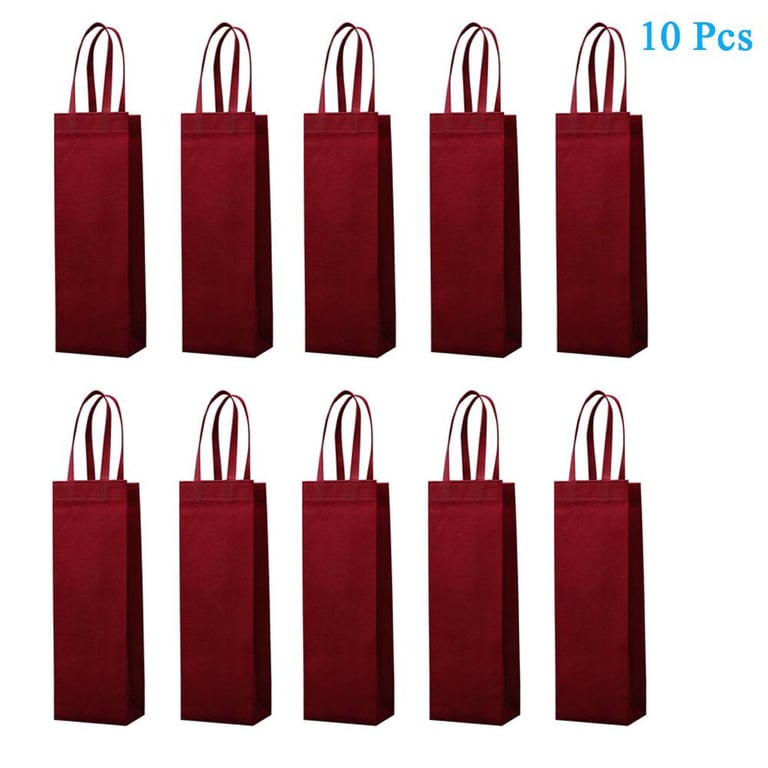 10 Pack Single Wine Gift Bags, Single Bottle Wine Tote Holder, Non-woven Wine Gift Bags Reusable Single Bottle Wine Bag with Handles, 41 x 12 x 8cm Perfect for Christmas, Birthday, Anniversary, Wedding