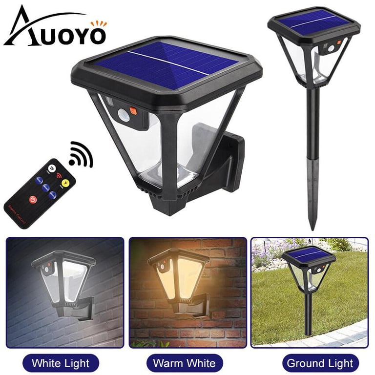 Auoyo LED Solar Wall Light Outdoor White Warm White Solar Motion Sensor Wall Ground Light Street Lamp IP65 Waterproof Adjustable 3 Modes Garden Decoration Street Lamp with Remote Control