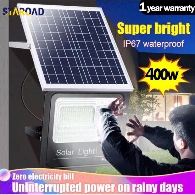 STAROAD Solar Light 5m Cable Big Watt Led High Brightness 100w 200w 400w Solar Street Light High Temp Endurance Spotlight Outdoor Lighting Ip65 Waterproof Solar Led Outdoor Light Sensor Automatically Turn On At Dark Lampu Solar Luar Rumah Te