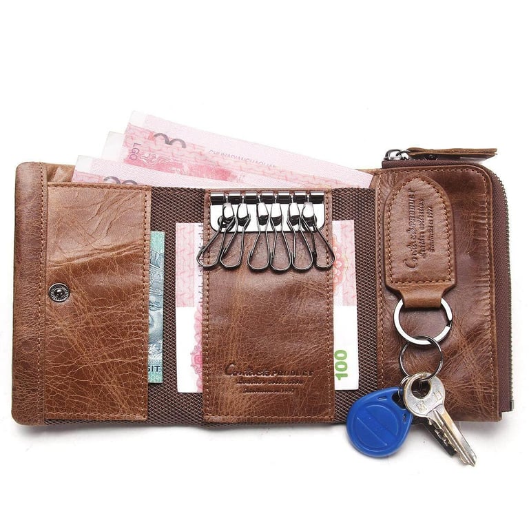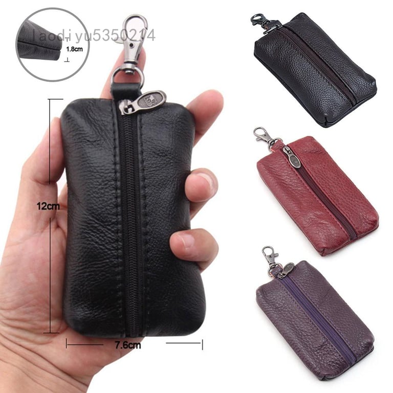 Unisex Genuine Leather Key Case Wallet Pouch Bag Keychain Holder With Key Ring And Zipper