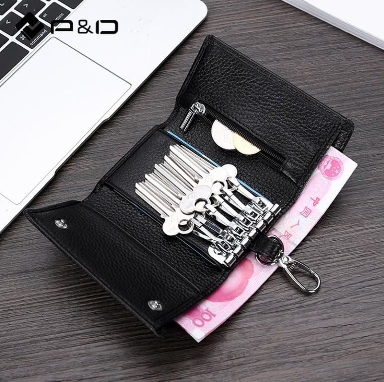 P&D Key Wallet Leather Fashion Zipper Case Men Coin Pouch Key Holder