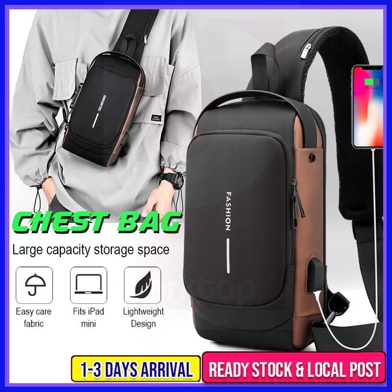 [SG Stock] Men's Chest Bag Large Capacity Waterproof Multifunctional Password Shoulder USB With Combination Lock Push Bag Sports Car Cool 单肩包男 胸包 腰包
