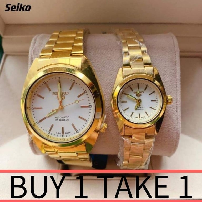 △✇□ Buy 1 Take 1 SEIKO 5 Waterproof Pawnable Couple Watch 18K Gold Watch for Women and Men Wedding Watch Relo
