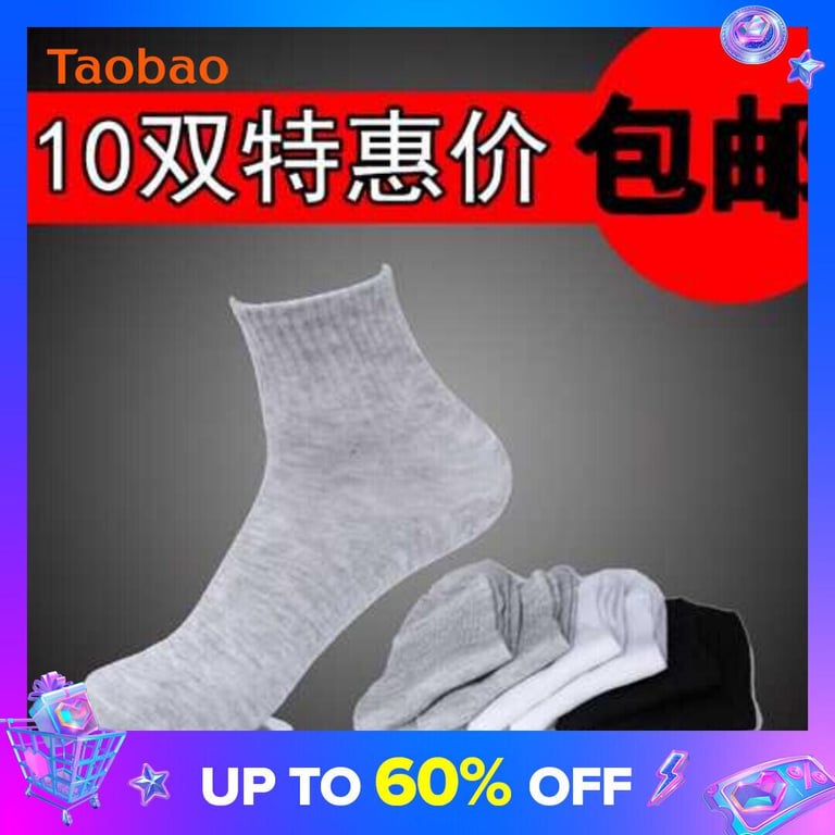 10 Pairs Factory Wholesale Cotton Men's Socks Casual Summer Stockings Disposable Tube Socks Black, White and Gray Wholesale