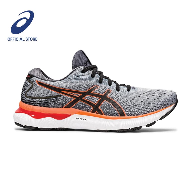 ASICS Men GEL-NIMBUS 24 Running Shoes in Sheet Rock/Shocking Orange