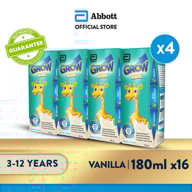 [Bundle of 4] GROW Growing Up Milk for Kids - Ready-To-Drink Vanilla (3 - 12 years) - 4x180ml