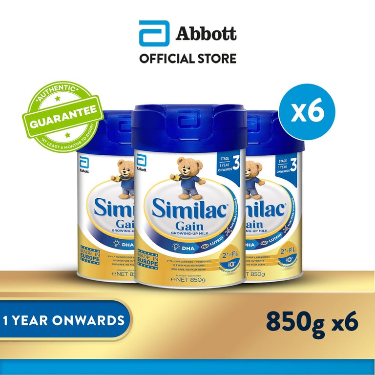 [Bundle of 6] Similac® Stage 3 Gain Growing-Up Baby Milk Powder Formula 2'-FL 850g (1 year onwards)