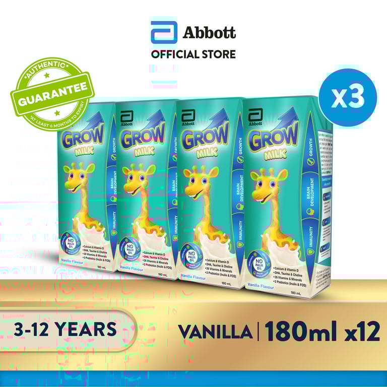 [Bundle of 3] GROW Growing Up Milk for Kids - Ready-To-Drink Vanilla (3 - 12 years) - 4x180ml