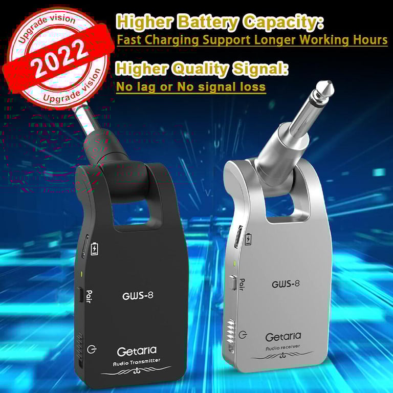 Getaria Wireless Guitar System 2.4G Rechargeable Transmitter Receiver for Electric Guitar Bass