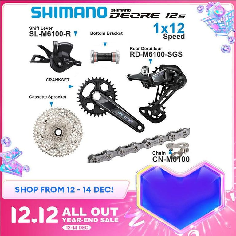 Christmas Gift SHIMANO DEORE M6100 M7100 M8100 Groupset 12 Speed MTB FC M510 M6100 M6120 M7100 Crank 170/175mm Crankset M6100 Right Shifter RD Long Cage SGS Chain BB52 BB CS 10-45T 10-51T Cassette Sunshine Cassette 11-46/11-50/11-52T Cogs
