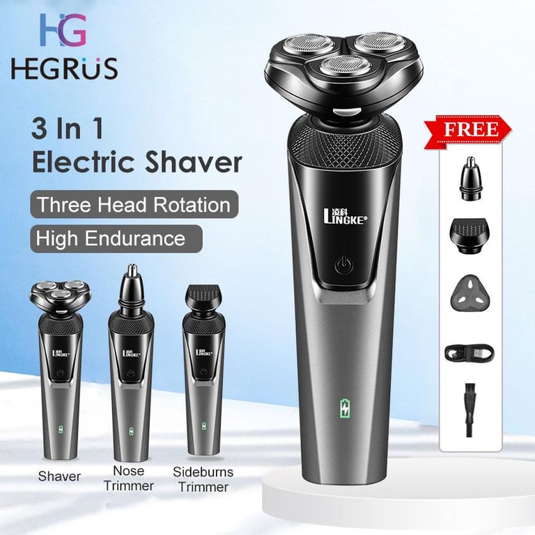 HEGRUS electric shaver for men Electric Shaver Rotary Razor 3 in 1 Facial Grooming Kit USB Rechargeable Beard Trimmer For Men Hair Cutter Machine Multifunctional Floating Razor Professional Electric Shaver For Men