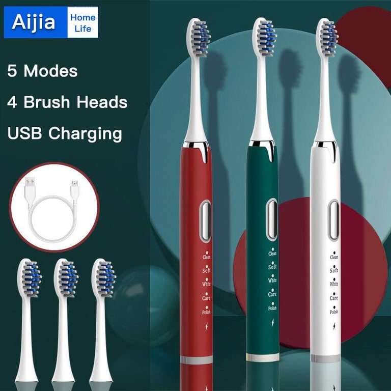 [4 Brush Heads]Aijia Electric Toothbrush 5 Operating Modes USB Fast Rechargeable Adult Waterproof Ultrasonic Automatic Toothbrush with Replacement Heads