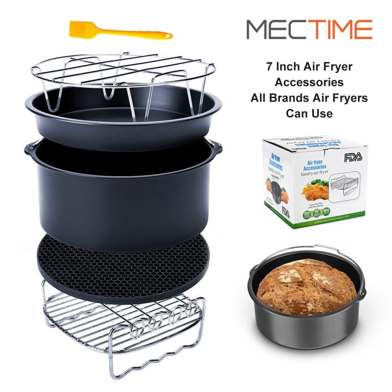 【SG Ready Stock】6 Pcs Air Fryer Accessories 7 Inch/6 Inch/8 Inch FDA Certified for Mayer Philips Ninja Non Stick Air Fryer Utensil(Cake Basket/Pizza Pan/Silicone Mat/Steel Metal Holder/Skewer Rack)