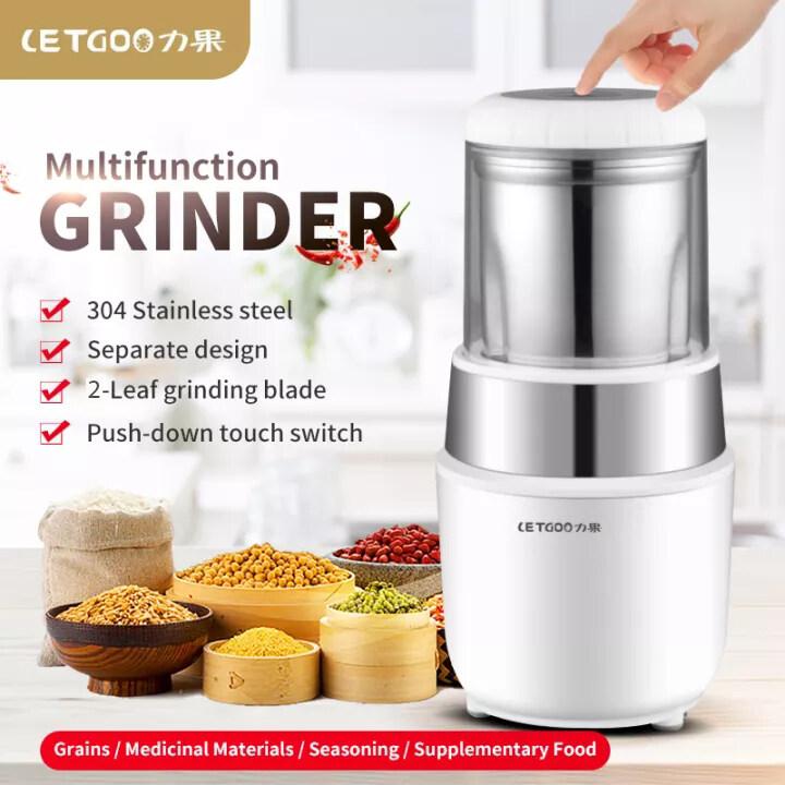 【Original LETGOO】220V Superfine High speed Electric Grinding Machine 2-Leaf Blade, grain, coffee beans, power mill, herb seasoning 304 stainless steel grinder with 3 Pin Adaptor