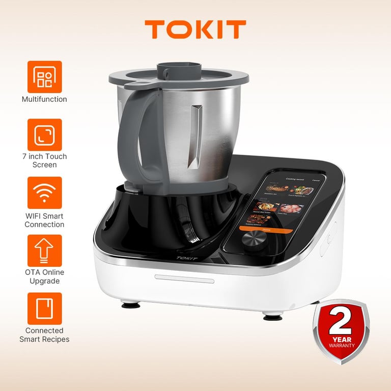 【BUY NOW GET FREE GIFT】TOKIT Omni Cook Robot All-in-1 Cooker with 21 Cooking Functions Built-in 7'' Touch Screen Guided Recipes Pre-clean, Chopper, Juicer, Blender, Weigh, Sous-Vide, Ice Crush and More